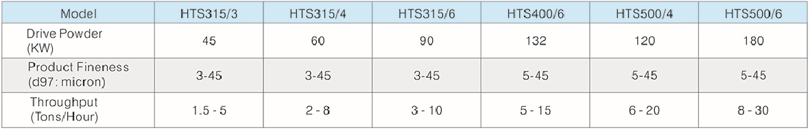 產品粒度范圍D50:1~45μm,最大產量為30t/h;